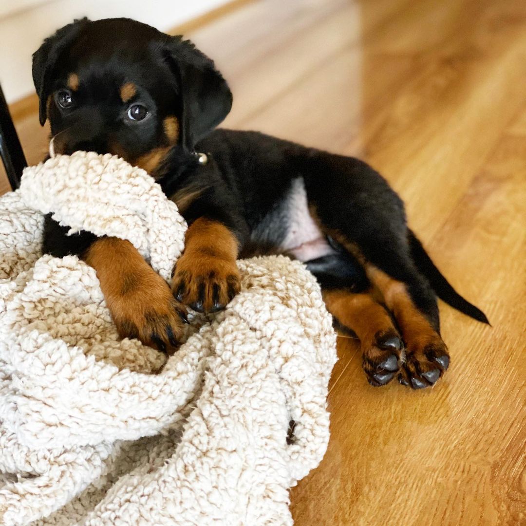 If you want a little Rottweiler puppy, be sure to set up lots of play dates with both people and animals.